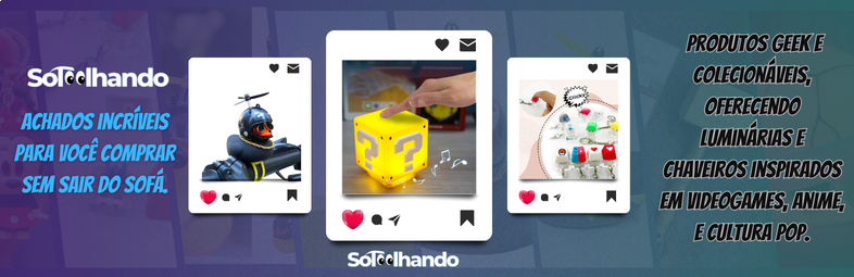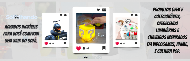 Especializada em produtos geek e colecionáveis, oferecendo luminárias e chaveiros inspirados em videogames, anime, e cultura pop.