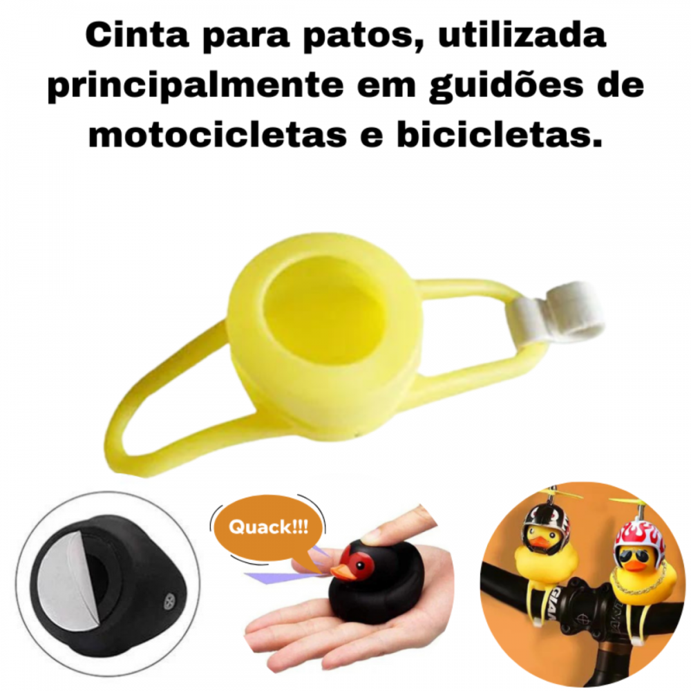 Patinho Pato Borracha com capacete para colocar no painel do carro, retrovisor, na moto ou bicicleta. Faz barulho ao pressionar, desde que o fundo esteja fechado.