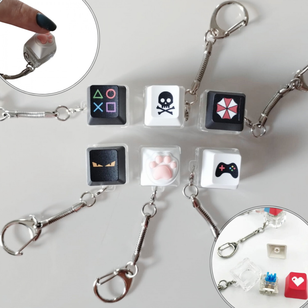 Personalize seu setup: Utilize o Chaveiro Teclado Mecânico Antistress como uma tecla personalizada no seu teclado mecânico favorito, basta desconectar a tecla do chaveiro e conectar no teclado mecânico, personalizando sua tecla favorita!
